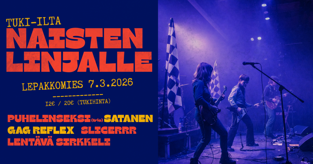 Järjestämme kansainvälistä naistenpäivää edeltävänä lauantaina 7.3. perinteisen tukikeikka-iltaman Lepakkomies-baarissa, jolla kerätään varoja Naisten Linjalle. Kaikki illan tuotot lahjoitetaan lyhentämättöminä Naisten linjan toiminnan tukemiseen.